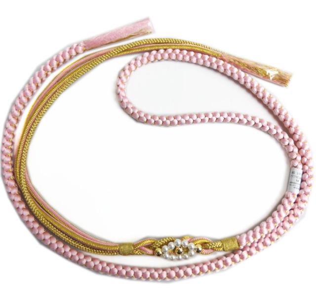 帯締め 帯〆 パール飾り付 先割れ 正絹 薄ピンク色金 振袖 成人式 着物 振袖用 きもの シルク