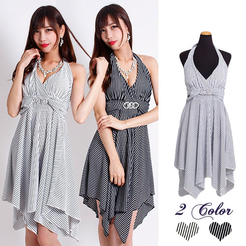 送料無料「沖縄、離島の方は除外です」【 M/Lサイズ ラメストライプ&3連SILVERサークルバックル付ミディアムドレス】 ナイト、パーティー、キャバドレス