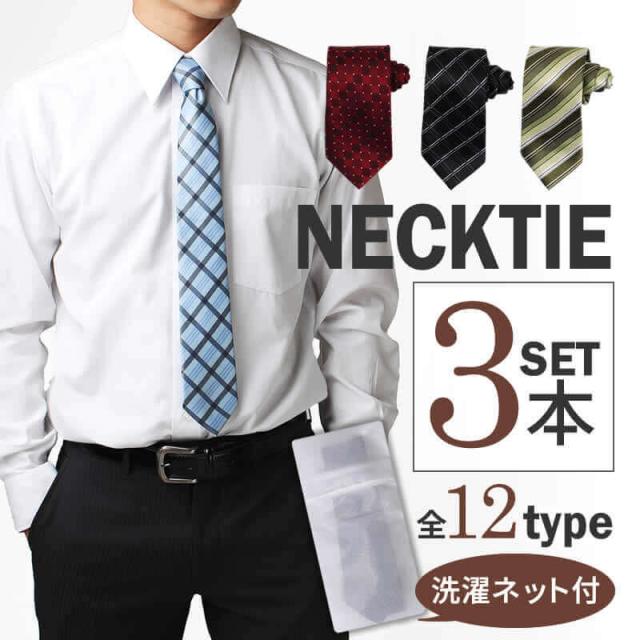 ネクタイ 3本 セット Bタイプ おしゃれ ウォッシャブル 洗濯ネット付き 洗濯可 メール便で送料無料 oth-ux-ne-1463-3fix 無地 ストライプ チェック ドット 白 ブルー ピンク 黒 フォーマル 結婚式 父の日