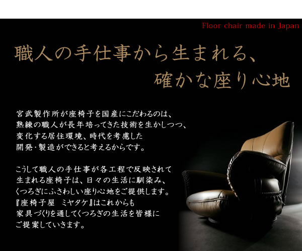 丁寧な手作業で仕上げた日本製座椅子ですので安心してお使いいただけます。