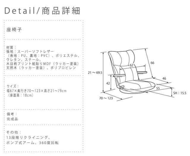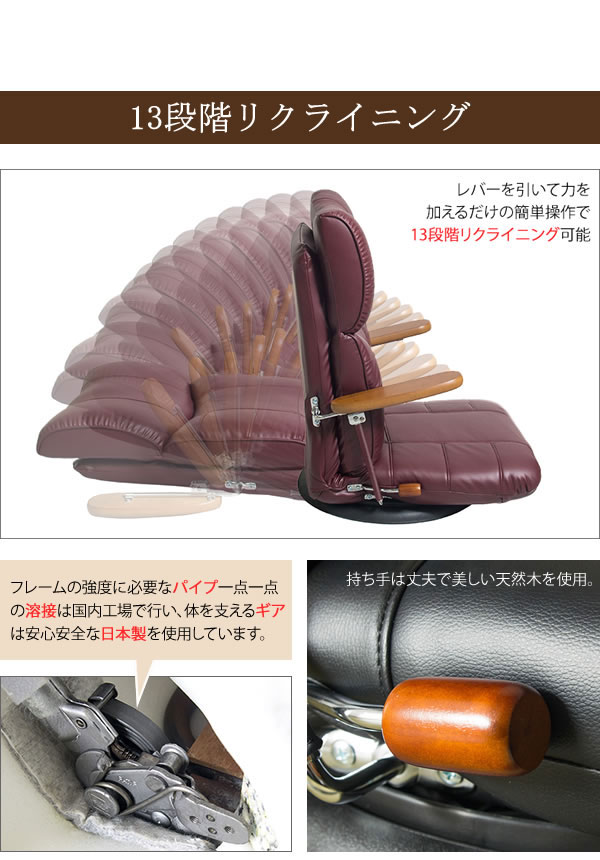 360度回転盤付き、背面はレバー操作で13段階に細かく調整できてテレビ鑑賞や読書、お昼寝も快適です。