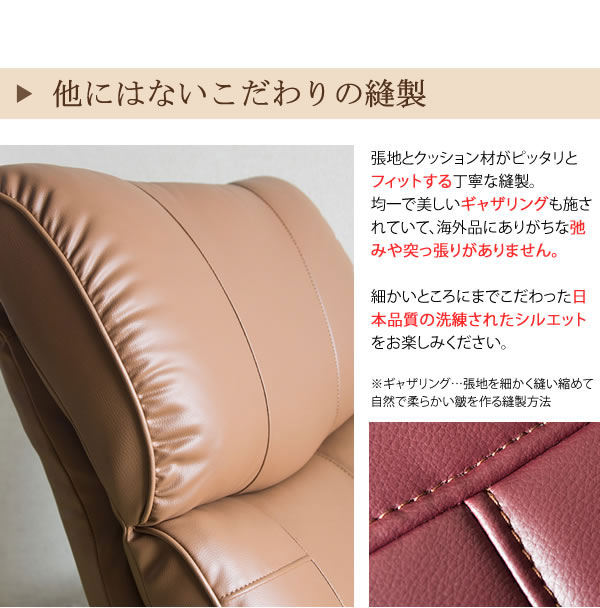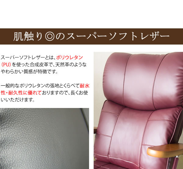 たっぷり詰まったウレタンに触り心地の良いスーパーソフトレザーの張地の