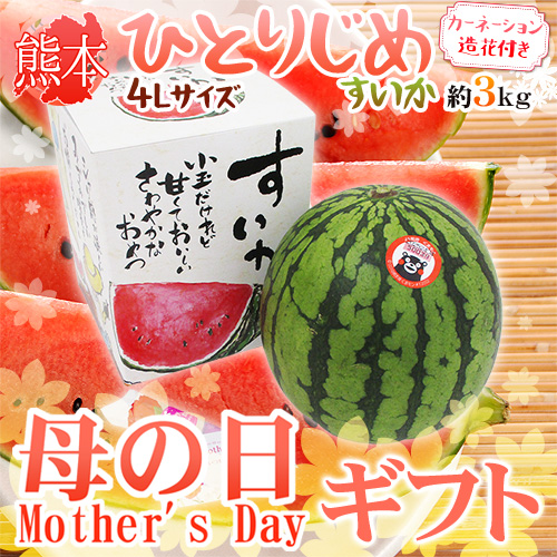 母の日ギフト ”小玉すいか ひとりじめ” カーネーション造花付き 化粧箱 4L 1玉 約3kg【予約 5月2日〜5月10日お届け予定】 送料無料