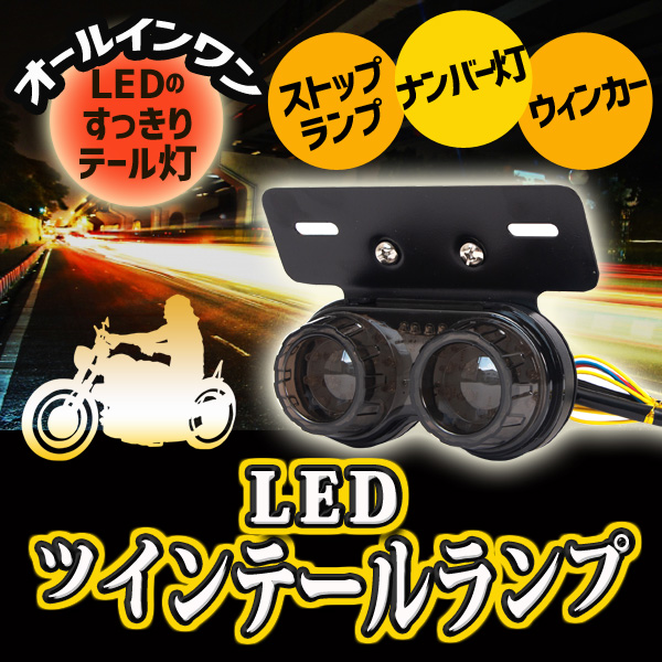 汎用 LED ツインテールランプ カスタム パーツ バイク 2灯 丸型 ライト ウインカー テール ステー 交換 ブラック 黒 ドレスアップ
