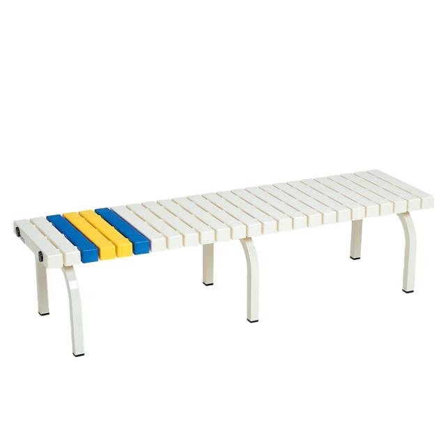 脚は耐久性に優れた粉体塗装仕上げの丈夫なホームベンチです。運動場や公園、プールなどの休憩スペースとして屋外屋内問わずに使うことができます。