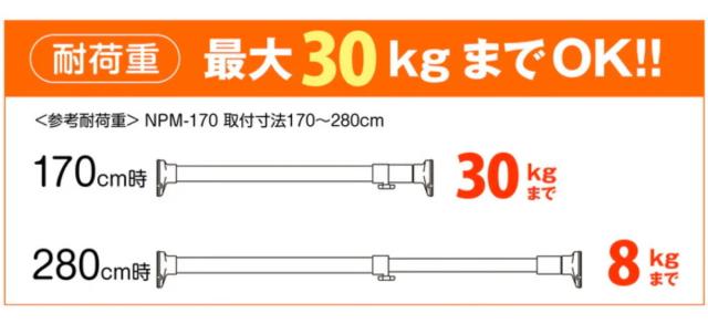 | 耐荷重 | 約 30〜8kg |