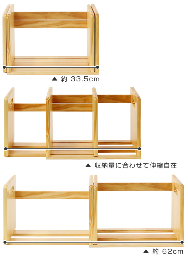 本立て スライド ブックスタンド 木製 幅33.5〜62×奥行18×高さ22cm ( 本 収納 伸縮 ブックエンド 仕切り スタンド 卓上 本棚 スライド式 デスク 卓上収納 ファイルスタンド デスク収納 ファイル収納 ファイル 雑誌 絵本 教科書 )