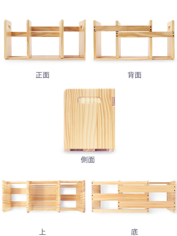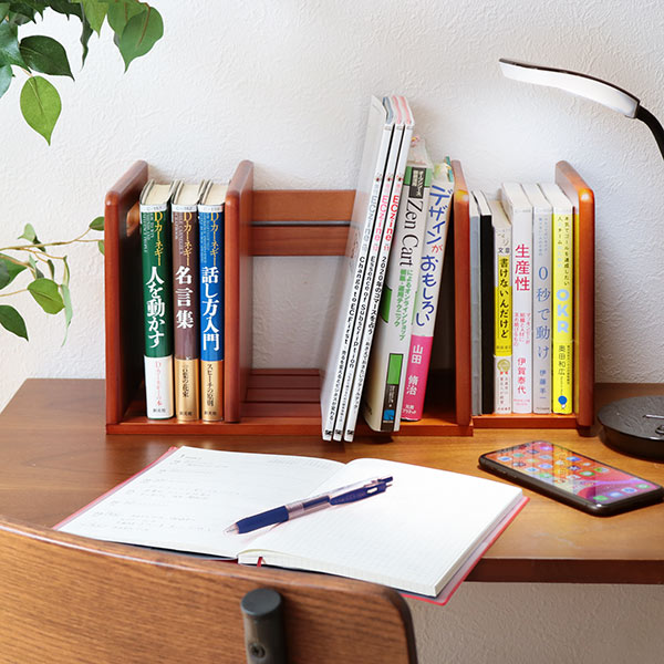 天然木の木目が美しく、馴染みの良い風合いで、お部屋の雰囲気を損ないません。無駄のないシンプルなデザインなので、飽きずに長くお使いいただけます。奥行が浅いので机の上に置いても狭くなりすぎず、圧迫感も出ないのが嬉しいポイントです。