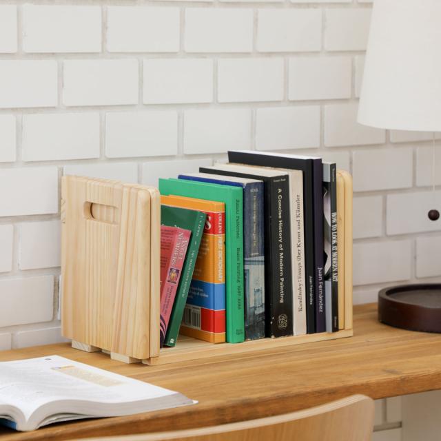 底板を使用した丈夫な構造になっています。机の上に置いてすぐに使いたい辞書や図鑑など、重たい本を収納しても、しっかり支えます。