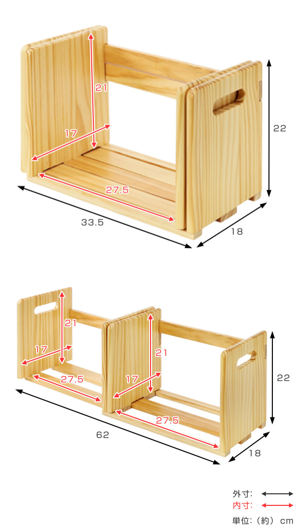 | サイズ | 約 幅33.5〜62×奥行18×高さ22(cm) |