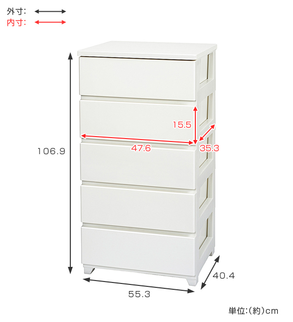 チェスト 5段 約 幅56×奥行41×高さ107cm タンス カラースタイルチェスト ( 収納 引き出し 収納ケース 完成品 整理タンス 天板 収納チェスト 衣類収納 引出し 光沢 プラスチック 日本製 幅56 56 )