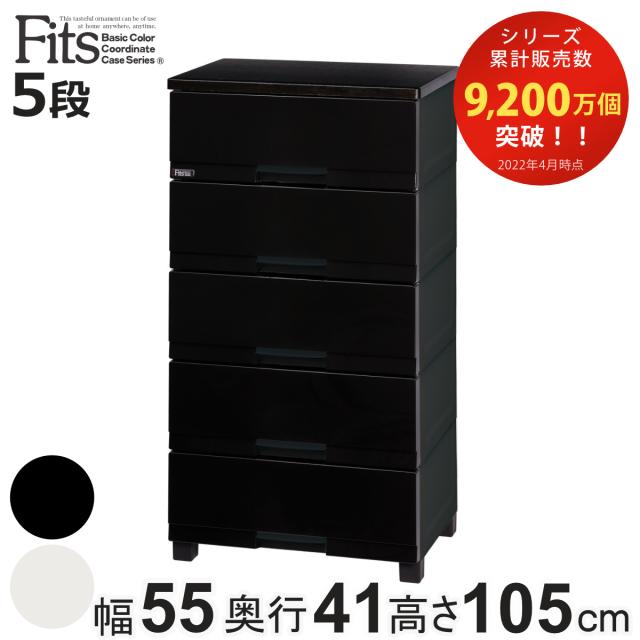 チェスト フィッツプラス プレミアム 5段 幅55×奥行41×高さ105cm FP5505 ( プラスチック 引き出し 日本製 完成品 タンス 収納 衣類収納 Fits フィッツ 衣装ケース 収納ケース 背面処理 リビング収納 洋タンス 木製天板 大容量 )
