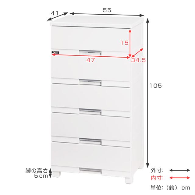 | サイズ | 約 幅55×奥行41×高さ105(cm) 引出内寸:約 幅47.2×奥行34.5×高さ15(cm) |