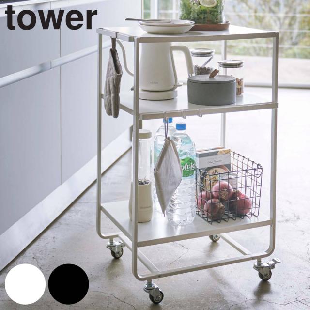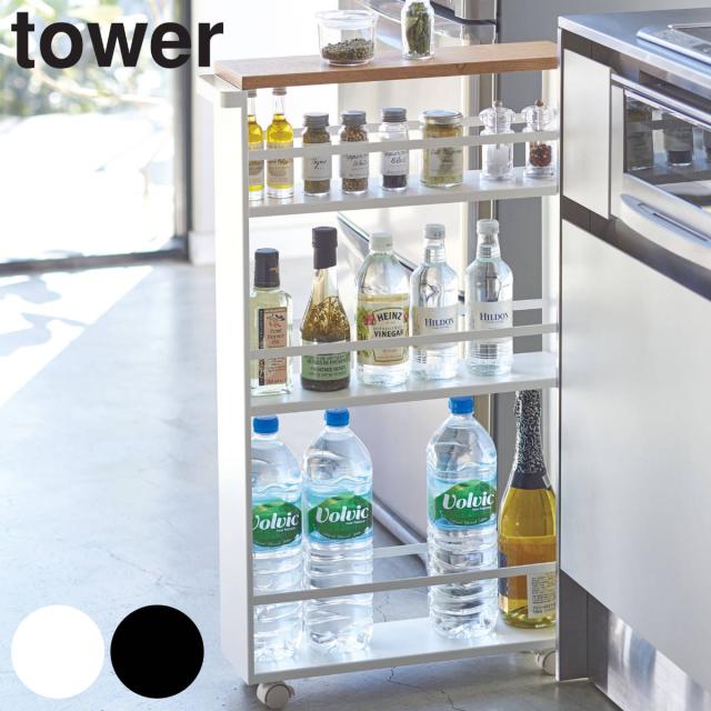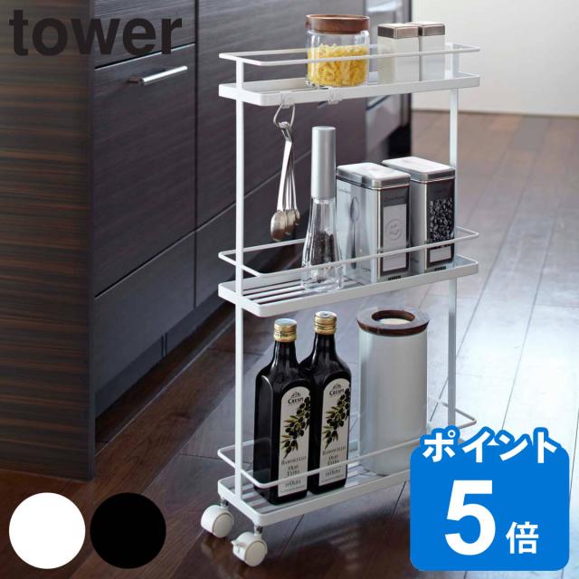 tower スリムキッチンワゴン タワー ( 山崎実業 スリムワゴン キッチンワゴン キッチンラック キャスター付き 3段 サイドラック 収納ワゴン キッチン収納 キッチン すきま収納)