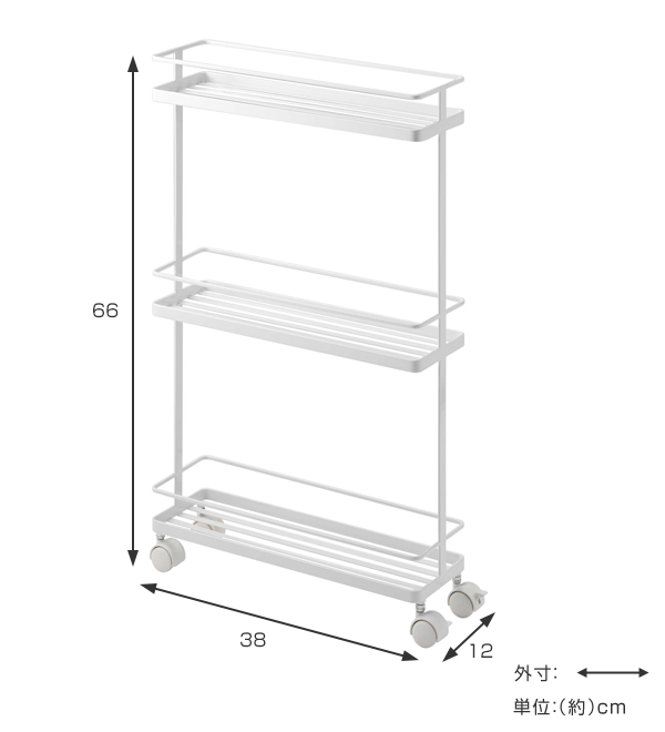 キッチンだけでなく、洗濯機横の隙間やサニタリーでも大活躍!奥行きわずか約12cmだから洗濯洗剤用のボトルや粉石鹸などのボックスを収納するのにちょうどいいサイズです。