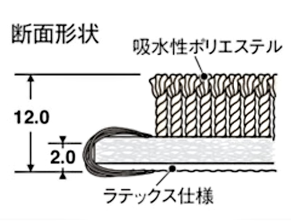 | 材質 | 表面:ポリエステル100%(吸水性ポリエステル) 裏面:ラテックス仕様(防カビ剤配合) |