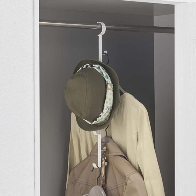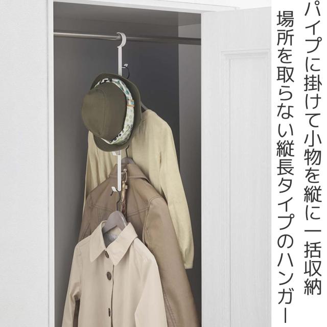 収納場所に困る洋服やバッグ、帽子、ベルトなどは大きさも形もバラバラでクローゼットの中で散乱しがちです。左右交互に連なった8つのフックハンガーを使用することで、縦にまとめて掛けられるので、場所を取らずに省スペースに収納できます。今ある収納スペースに手軽に取り入れられるちょい足しアイテムとして便利です。