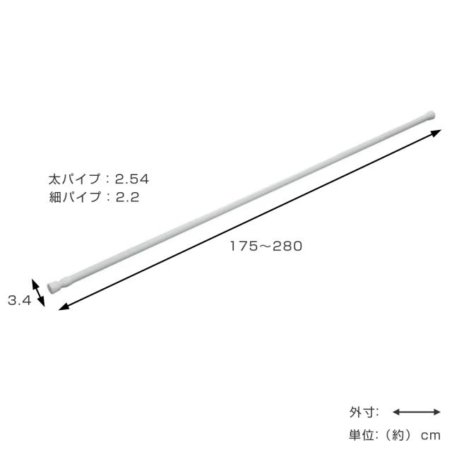 | サイズ | 約 幅175〜280×奥行3.4×高さ3.4(cm) パイプ直径:約 2.2〜2.54(cm) |