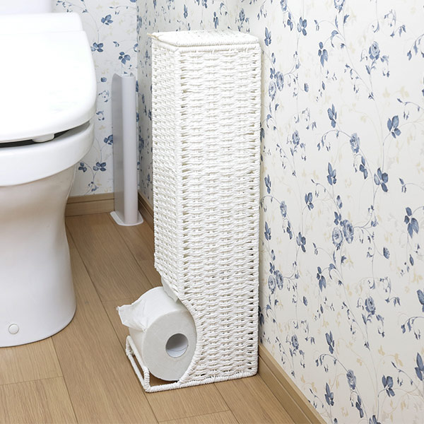 トイレットペーパーがおしゃれに収納できる、ナチュラルなロールストッカーです。かさばる予備のロールをすっきりと収納できます。細身のスタイルなので、スペースの少ないトイレ空間でも、場所を取らず大活躍します。