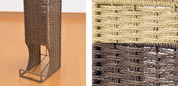 | 省スペースですっきり収納 幅13.5cmのスリムタイプなので省スペースに収納できます。 | 軽くて丈夫 紙をねじって編んでいるので、軽くて丈夫です。 |