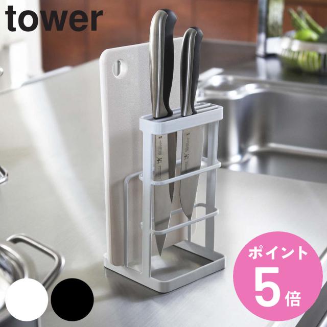 tower 山崎実業 カッティングボード&ナイフスタンド タワー ( タワーシリーズ まな板スタンド 包丁スタンド まな板立て 包丁立て 包丁ホルダー おすすめ まな板置き まな板ホルダー キッチンツールスタンドtower 山崎実業 キッチン)
