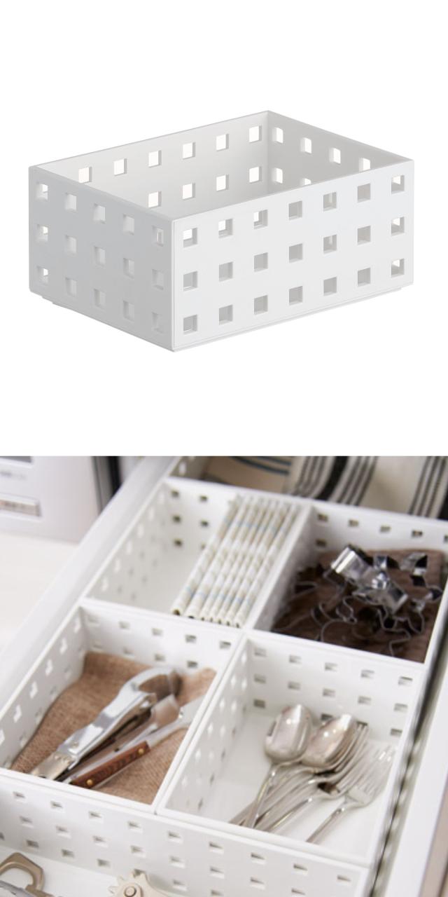 名刺入れとしてぴったりなサイズで、また文房具やカトラリーなど、幅広い小物の収納に丁度良いサイズです。身の回りのものを「種類別」「用途別」「部屋別」に整理できる収納ケースです。