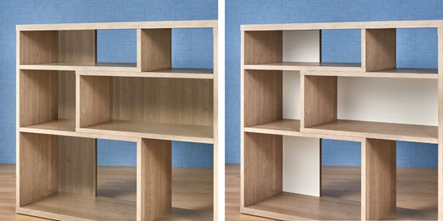 背板の色は2パターンの表情を楽しめるリバーシブル仕様です。お部屋の雰囲気に合わせて、ツートンカラーのモダンな雰囲気をお楽しみください。組み立ての際に、背板のカラーをお選びいただけます。
