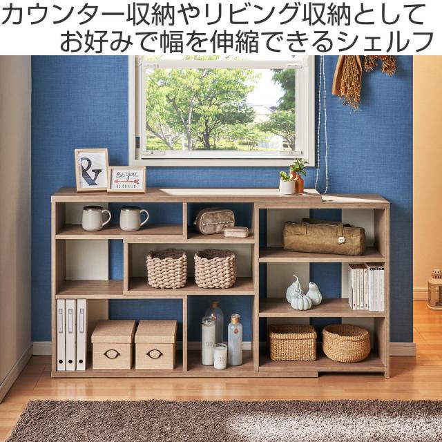 カウンター下収納 伸縮ラック レギュラータイプ 高さ80cm 幅118〜155cm 伸縮機能 ( オープンラック カウンター スライドラック 伸縮式 ディスプレイ ラック 窓下収納 キッチンカウンター 棚 収納 リバーシブル ツートーン )