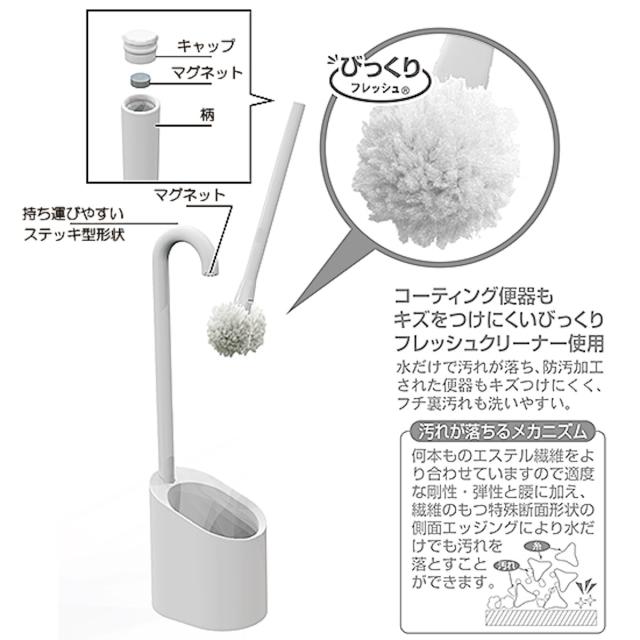 ●磁石内蔵でクリーナーを浮かせて空中収納できる、トイレブラシとケースのセットです。