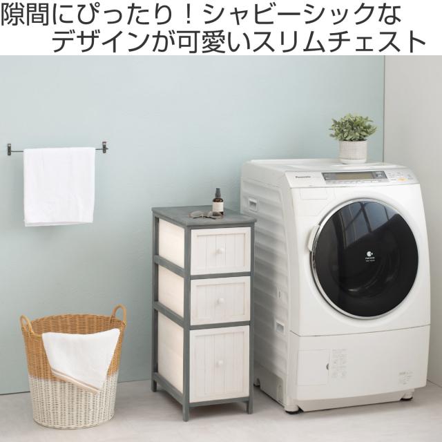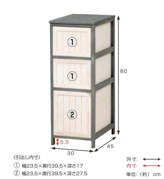 チェスト 3段 シャビーウッド アンティーク調 幅30cm ( サイドチェスト 隙間収納 桐製 桐チェスト 洋タンス 子供部屋 スリム 省スペース 収納ラック フレンチカントリー )