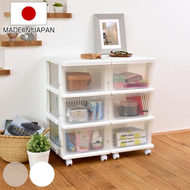 収納ケース シーズユニット 3段 組み立て式 連結できる キャスター付き ( 収納ボックス 幅35×奥行42×高さ68.3cm 引き出し プラスチック 衣類収納 日本製 連結可能 スリム 収納 衣装ケース 収納チェスト クローゼット 洗面所 )