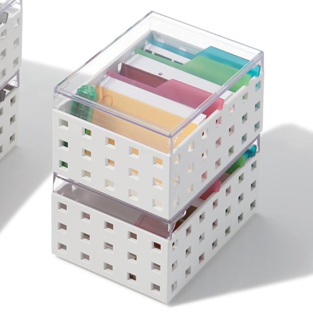 COBACOシリーズは、奥行もしくは幅が同じサイズの商品は積み重ねて使用できます。スペースや目的に合わせて自由にカスタマイズすることで使い方が広がり、さまざまな場所の小物収納として役立ちます。