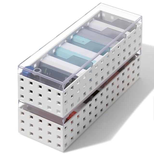 COBACOシリーズは、奥行もしくは幅が同じサイズの商品は積み重ねて使用できます。スペースや目的に合わせて自由にカスタマイズすることで使い方が広がり、さまざまな場所の小物収納として役立ちます。