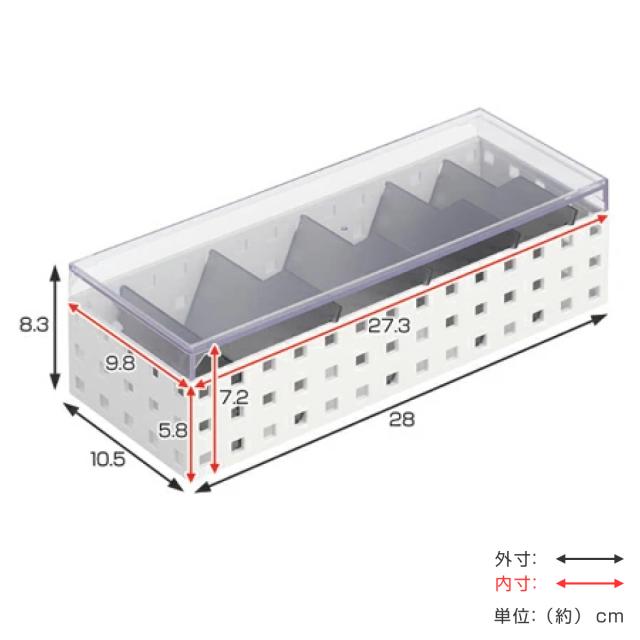 | 材質 | 本体、フタ:ABS樹脂 仕切り板、見出し板:スチロール樹脂 |