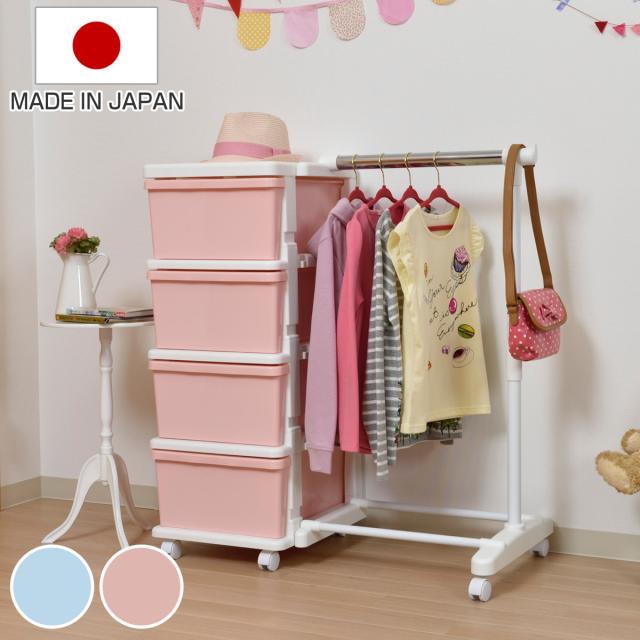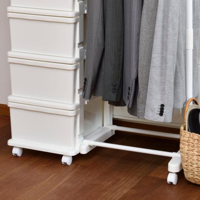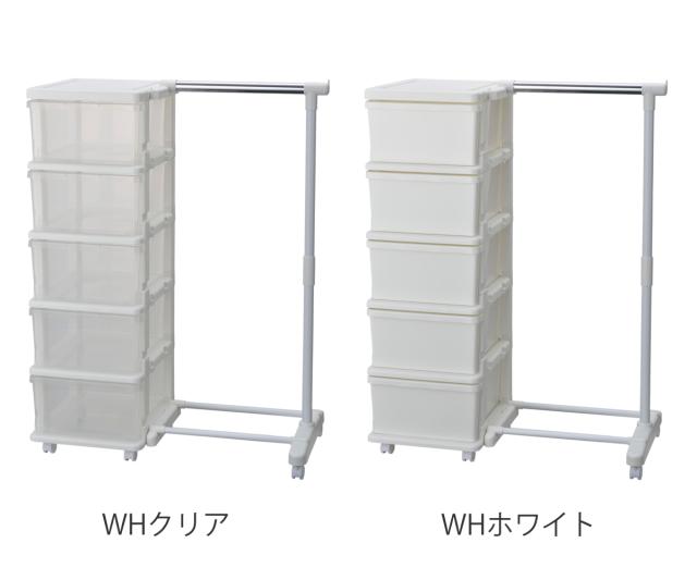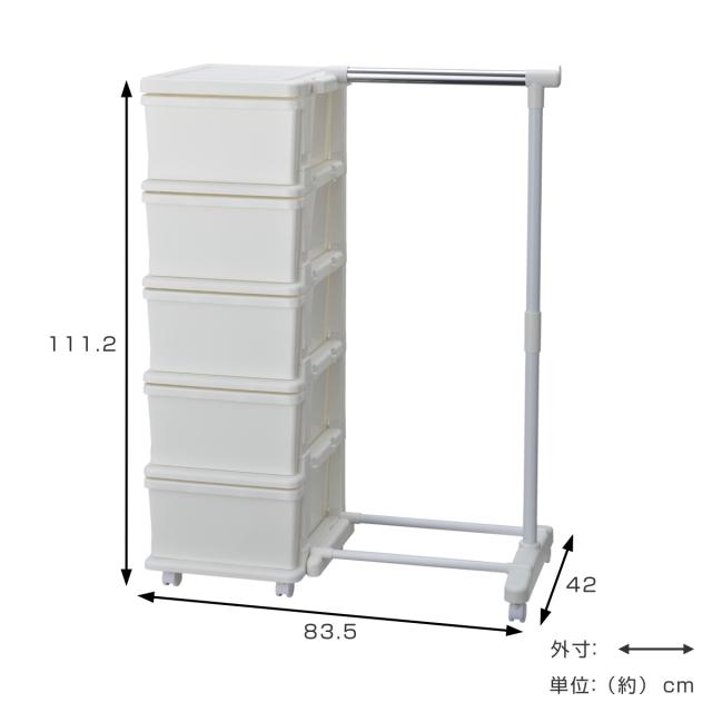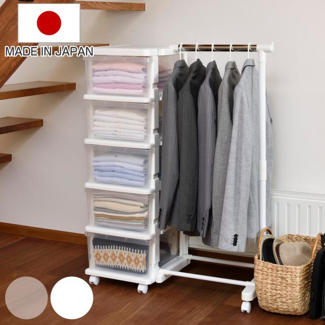 収納ケース シーズユニット 5段 パイプハンガー付き 組み立て式 連結できる キャスター付き ( 収納ボックス 幅83.5×奥行42×高さ111.2cm 引き出し 日本製 衣類収納 連結可能 ハンガーラック 収納 衣装ケース 洗面所 プラスチック )