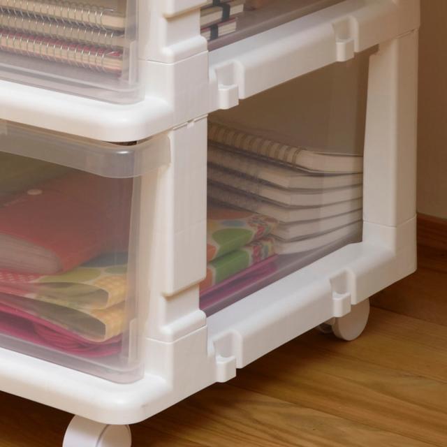中に何が入っているか一目で分かるクリアと中身が隠せてスッキリとした印象のホワイトがございます。