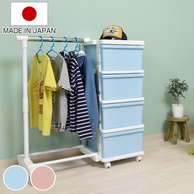 収納ケース カラーシーズユニット 4段 パイプハンガー付き 組み立て式 連結できる キャスター付き ( 収納ボックス 幅83.5×奥行42×高さ91.2cm 引き出し 日本製 衣類収納 連結可能 ハンガーラック 収納 衣装ケース プラスチック )