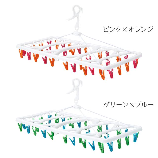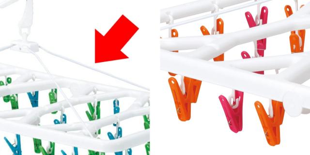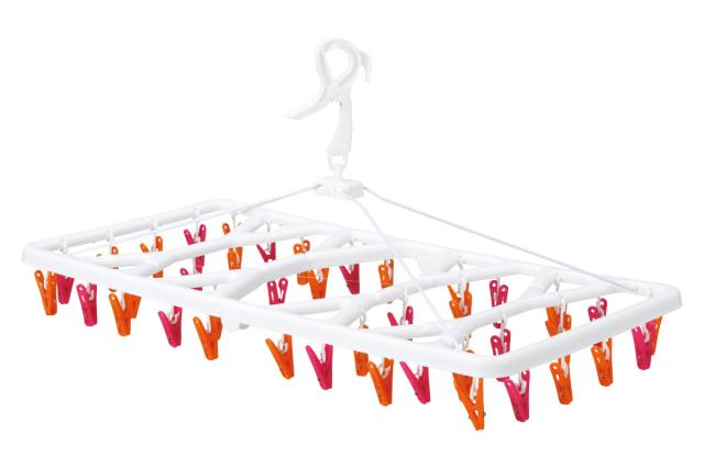たっぷり干せる40ピンチの角ハンガーです。二重配置のピンチなので、内側に下着などを干して、外側にタオルなどを干せば、中が見えないように隠し干しできます。