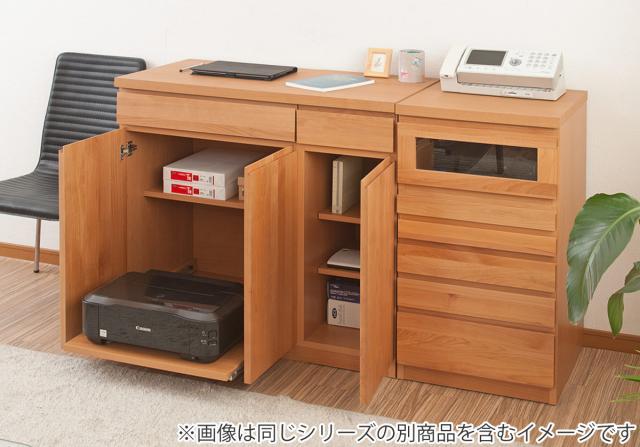キャビネット パソコンデスク 収納棚 天然木 アルダー 幅90cm ( PCデスク キャビネットタイプ リビング収納 日本製 完成品 プリンター収納 ライティングビューロー 省スペース コンパクト 机 引出し )