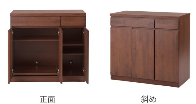 | 材質 | 前板:天然木アルダー材(ウレタン樹脂塗装) 天板:強化プリント紙化粧繊維板 その他:プリント紙化粧繊維板 |