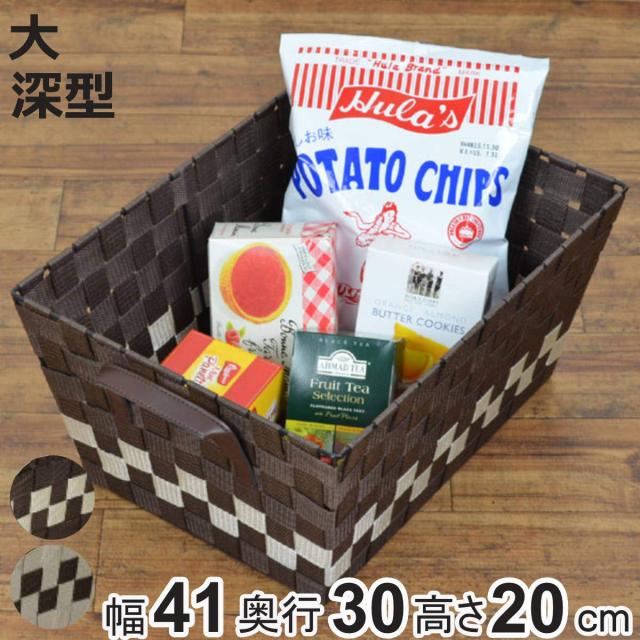 収納ボックス テープバスケット 大 深型 約 幅41×奥行30×高さ20cm ( かご カゴ バスケット 収納ケース 小物入れ 収納 小物 小物収納 大きい おもちゃ箱 丈夫 軽量 キッチン 持ち手付き 衣類収納 タオル 洗面所 リビング 荷物置き )