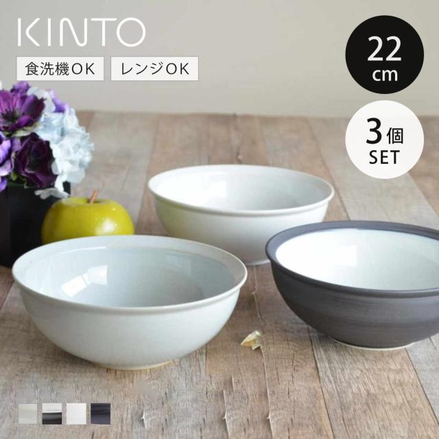 KINTO キントー RIM ボウル 220mm 同色3個セット ( 22cm 磁器 食洗機対応 電子レンジ対応 皿 深型 中鉢 どんぶり フチ 日本製 お皿 盛皿 ディナーボウル 汁もの 麺類 丼 おかず メイン うつわ リム おしゃれ )