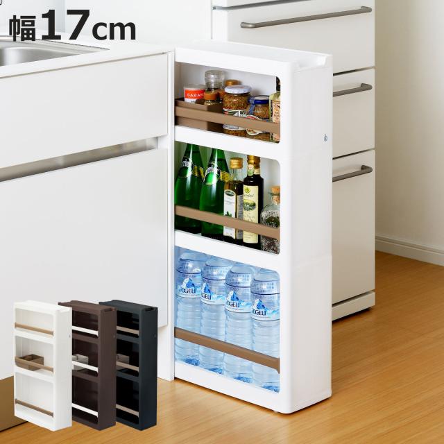 隙間収納 ストランティ ラックB 3段 17cm プラスチック製 コロ付き 完成品 ( キッチン 収納 すき間収納 ラック 隙間 キッチン収納 幅17cm 収納ストッカー キッチン収納 キッチン すきま収納)