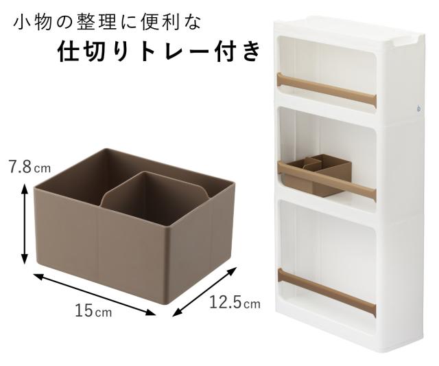 仕切りはトレーと一体型になっているので調味料や小物の整頓にもぴったりです。