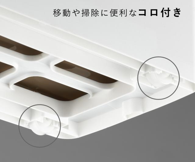 ちょっとした移動や掃除機をかける時にスムーズに動かせるコロ付きです。中に物が入った状態でも、前面をちょっと持ち上げれば移動も簡単です。