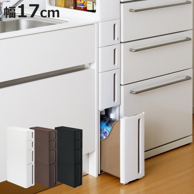隙間収納 ストランティ ドロアーC 4段 17cm プラスチック製 コロ付き 完成品 ( キッチン 収納 すき間収納 引き出し 隙間 キッチン収納 引出し 幅17cm 収納ストッカー キッチン収納 キッチン すきま収納)