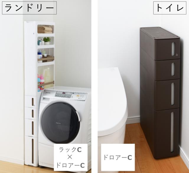 | 調味料やレトルト食品のストック、洗剤やキッチンペーパー、ゴミ袋など消耗品の収納に。 | タオルやドライヤー、ヘアケア用品の収納に。 |
