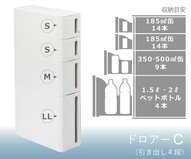 上段に2つある「S」サイズの引き出しには、缶コーヒーなど小さな185ml缶や調味料、缶詰などが収納できます。
