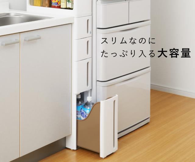 キッチン、洗面所、トイレなど家の中にある今まで使うことのできなかった17cmの狭いすき間を、収納スペースとして有効活用できます。デッドスペースになっていた隙間にぴったりと収まり、キッチン小物を隠してすっきり整理整頓できます。