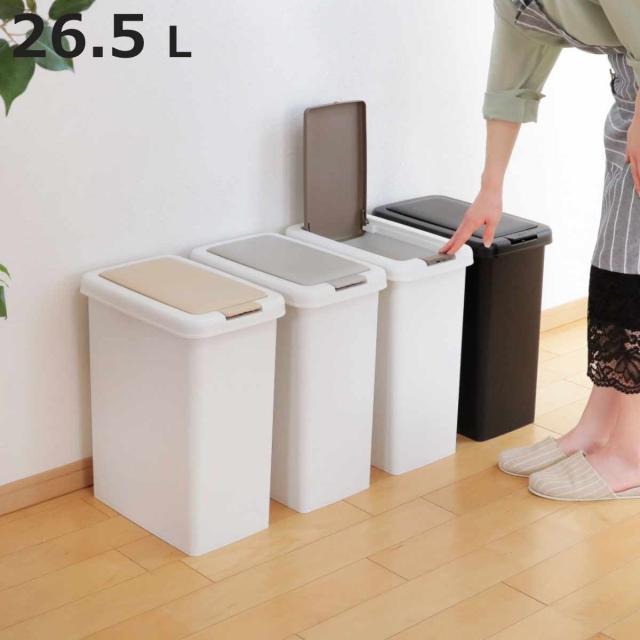 ゴミ箱 ふた付き スリムプッシュ 26.5L ( ごみ箱 26.5リットル プッシュふた ワンタッチ オープン 分別 スリム 角型 キッチン 袋止め付き シンプル ゴミ箱 ふた付き)